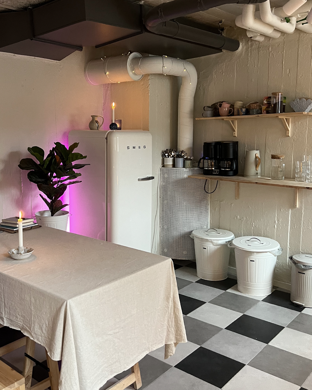 Det finns kaffe, te och cola på plats och ni har möjlighet att ta med egen dryck och förtäring. Kylskåp, bubbelglas och skålar finns på plats.
